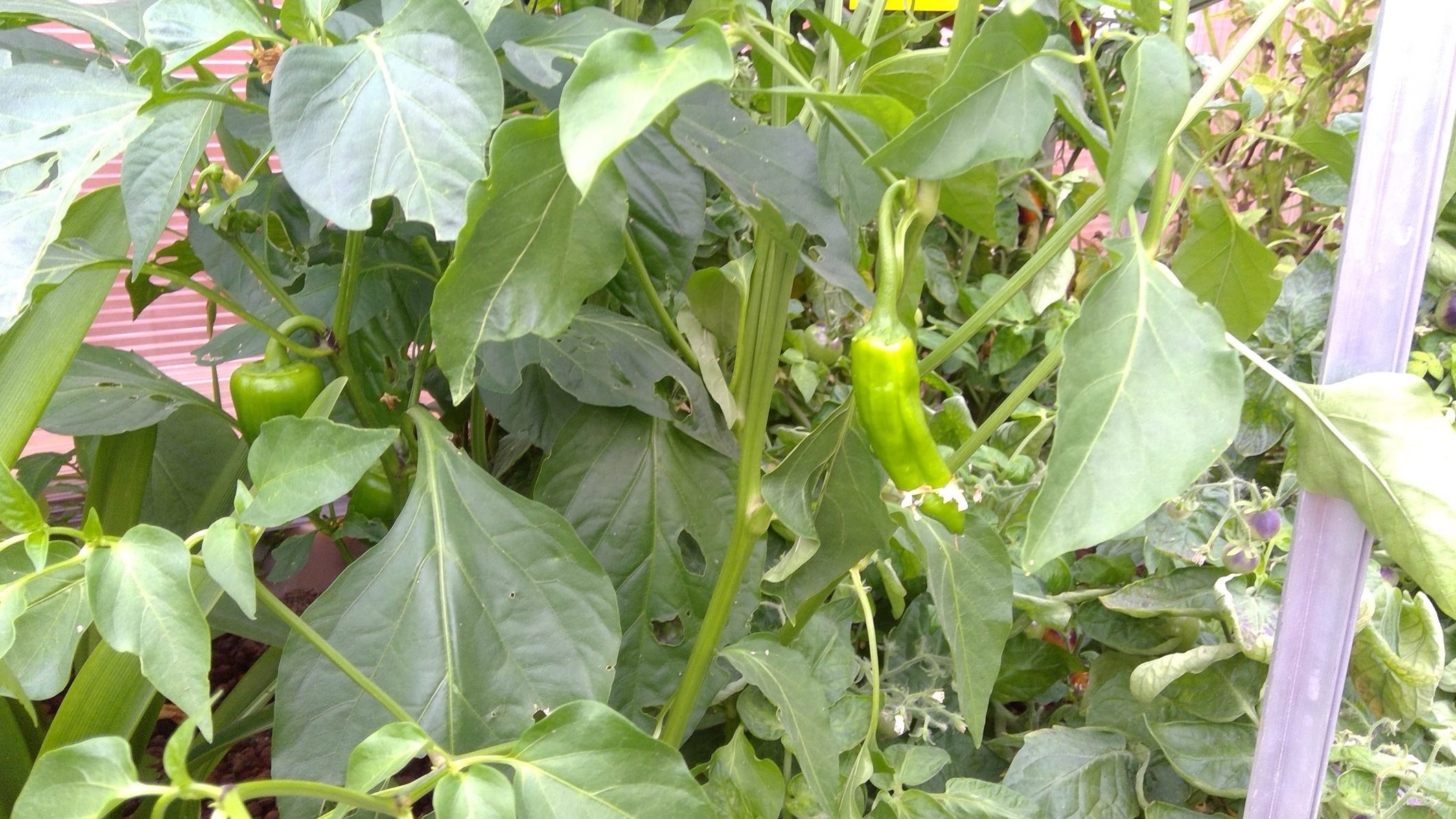 Bild 1 zeigt auf dem rechten Blatt irgendwelche abgestorbenen (?) Fluginsekten (?) auf einer Paprika-Pflanze. Das selbe Bild zeigt sich auf dem Handamar bzw. bei sehr vielen Pflanzen und die Bilder sind nur Beispiele. Die Paprika steht in der Kalt-AP, der Handamar in einem Pflanzkübel.