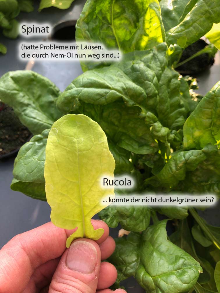Grüne Blätter: Letztes Jahr als ich noch keine Fische hatte und ständig Undichtigkeiten... und der Filter war bestimmt auch noch nicht mit ausreichen Bakterien versehen, hatte ich viel Basilikum... allerdings mit eher sehr hellgrünen Blättern, wobei der Basilikum bei aktuell noch kühlen Temperaturen helle Blätter bekommt und auch durch zuviel Sonne... da hab ich auch noch keine Erfahrung, wie sich dann mehr Eisen auswirken wird.