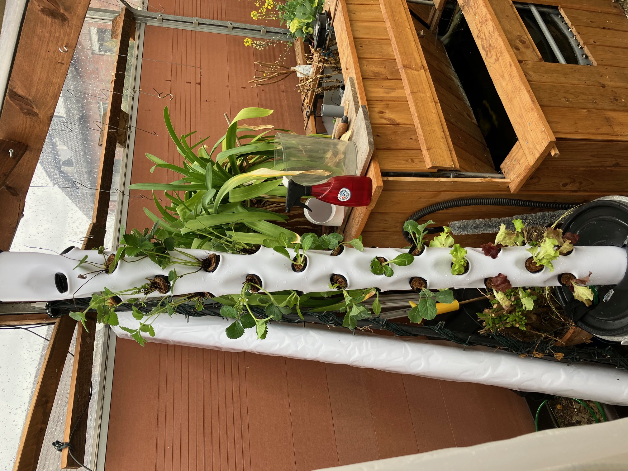 attachment=3754] In dem Tower sind 12x Salat, 6x Wirsing der eigentlich Kohlrabi sein sollte, 6x PakChaio, 8x Erdbeeren bei denen ich mich von der Aufschrift "Immer tragend" habe verführen lassen und 4x Ableger der "Weißen Erdbeere" die sich im Garten selber gesäht hatte. Beim Wirsing bin ich echt gespannt wie das funktionieren wird, sollte der Kopflastig werden und aus dem Rohr herausfallen kommt der bei Zeiten einfach in die Kalt-AP und ich weiß dann das die ganzen Bilder im Internet KI-Fakes sind. Die obere Position für 3 Pflanzen habe ich frei gelassen da sich das Wasser dort oben nicht so ganz optimal verteilt. Ich habe für den Anfang die Sorge das die Pflänzchen dort oben vertrocknen könnten. Sobald der Salat ausreichend lange Wurzeln hat, so ca. 10-15cm werde ich den von unten nach oben setzen. Mit den langen Wurzeln ist sichergestellt das die im Rohr weit genug herab hängen und Wasser bekommen.