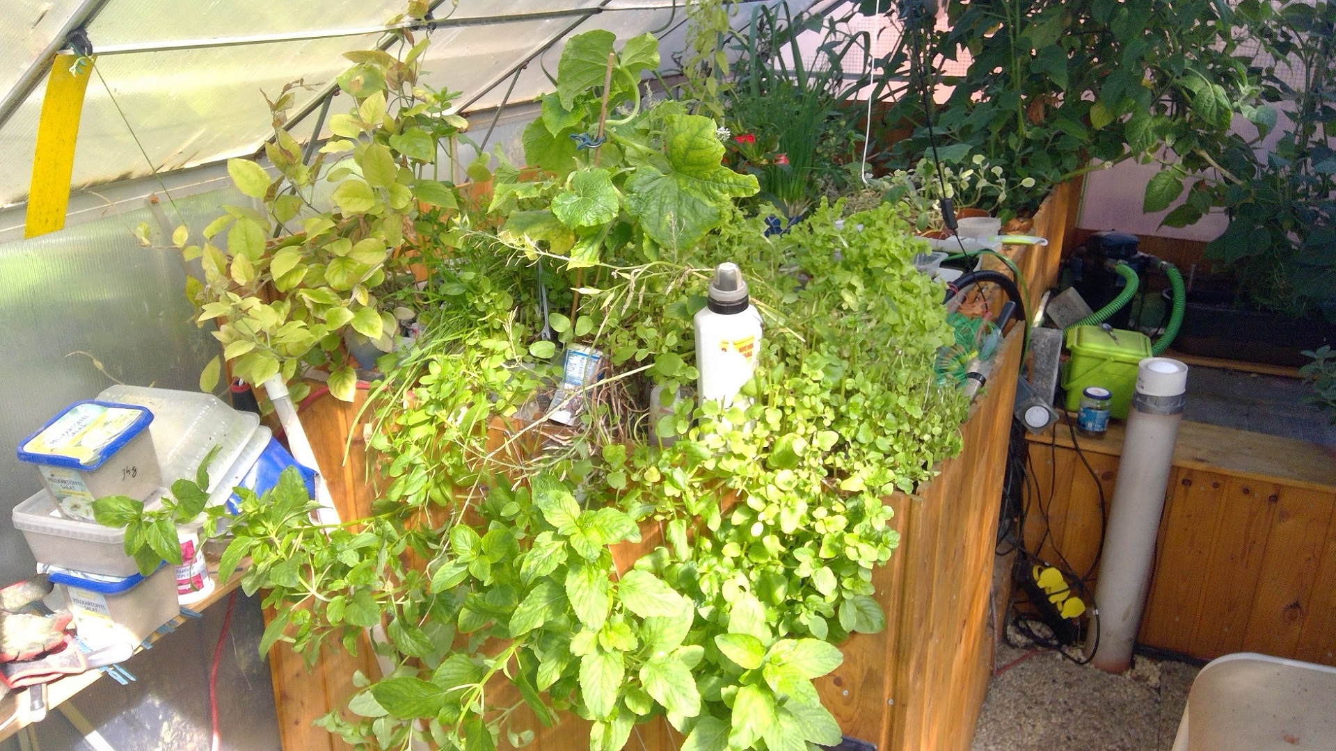 Jetzt wo ich wieder ein bischen mehr Luft habe geht es auch beim GW der neuen GW-AP weiter, aber ich bin noch nicht so weit das man von einer AP reden kann. Ich bin jedoch begeistert von den Videos die Micha regelmäßig einstellt und habe auch mal eins erstellt, ich werde jedoch nicht so regelmäßig posten wir Micha, dafür fehlt mir einfach die Zeit. In dem Video habe ich auch nur ganz kurz mal unsere alte GW-AP gefilmt solange es sie nch gibt. Das Video findet Ihr auf meiner Homepage https://www.drehruemchen.de/aquaponik/ Ich fände es klasse wenn Ihr Euch die Homepage zum Thema AP anschauen würdet und mir hier im Forum Verbesserungsvorschläge schreiben. Jetzt der bedauerliche Teil dieses Posts: Auch wir mussten eine neue Lern-Erfahrung machen und haben sehr zu unserem bedauern 6 Mini-Tillies verloren. Ein ganz banaler Fehler. In unserem 3 Generationen Tillie-Tank hatten die Minies das Nachsehen da wir wie immer mit 3mm Schwimmfutter gefüttert haben und das Ergebniss war, dass die Großen und die Halbstarken das Schwimmfutter vertilgt hatten bevor es so weit aufgeweicht war das die Minies es fressen konnten. Basierend auf dieser Erkenntnis sind wir seit ca. 1 Woche dazu übergegeangen das Futter im Mörser zu zerkleinern und exakt seit diesem Datum haben wir keine Ausfälle mehr. Ein Teil des Futters sinkt sofort auf den Boden zu den Minies und der andere Teil schwimmt zwar noch, wird auch von den Großen gefressen, aber die Minies schnappen sich die mundgerechten Stücke. Die erste Idee das es sich um die üblichen 10% Ausfall/Monat bei Minie-Tillies handelt wollten wir nicht mehr glauben als der vierte Minie binnen kürzester Frist gestorben war, die zweite Idee das ein Halbstarker die Minies jagt war ebenfalls Blödsinn da die toten Minies unbeschadet waren. Gruß Stephan RE: Das 1´ste Jahr - mz1981 - 03.06.2023 Hi Stephan, Gut geworden dein Video. Jetzt finde ich, das mein Dschungel gar nicht so schlimm aussah 😉 Bei mir wächst auch alles gut, nur die Erdbeeren stehen seit der letzten Ernte etwas auf der Stelle. Die rote Beete schmeißt den Blähton raus, die Netztöpfe werden etwas klein 😁 Bei meinen Kois fütter ich verschiedene Größen Futter, so bekommen die Kleinen auch etwas ab 👍 Grüße Micha RE: Das 1´ste Jahr - Stephan - 03.06.2023 Hallo Micha, es freut mich im Besonderen das Dir mein Video gefällt, schließlich hast Du den Anstoß dafür gegeben. Ich habe soeben in dem Dickicht einen "Neuzugang" entdeckt. Ich hatte letztes Jahr im Frühjahr einen Rest Ingwerwurzel im Ebbe-Flut verbuddelt da das Reststück nicht mehr vertrauenswürdig ausgesehen hat. Jetzt nach einem jahr ist tatsächlich ein erster Trieb aus dem Blähton hervorgekommen. Gruß Stephan RE: Das 1´ste Jahr - Stephan - 04.06.2023 Hallo Zusammen, die zweite Ernte Pfefferminze ist eingefahren und jetzt sieht man auch wieder die anderen Pflanzen. Jetzt kann man mitten in der Minze die Snackgurke wieder erkennen und links das Käsekraut. Gruß Stephan |