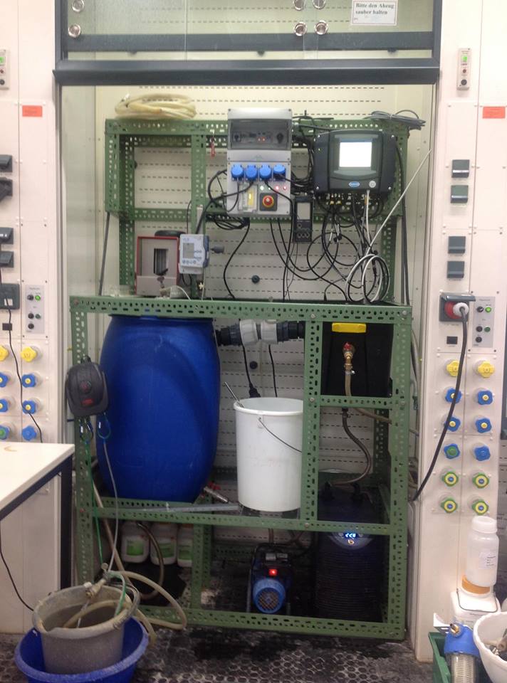 Dazu haben Studenten vor mir einen Versuch aufgebaut, an den über die Jahre eine Abwasser-Analytik im Wert von knapp 15.000€ installiert wurde. Kurze Materialliste für einen Überblick