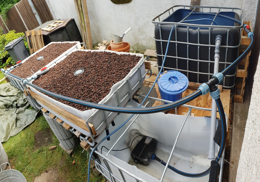 Im April hab ich die Entscheidung getroffen eine CHOP2-basierte Anlage im Garten zu errichten, für den Anfang auf Basis von IBC-Containern mit Ebbe&Flut-Beeten.