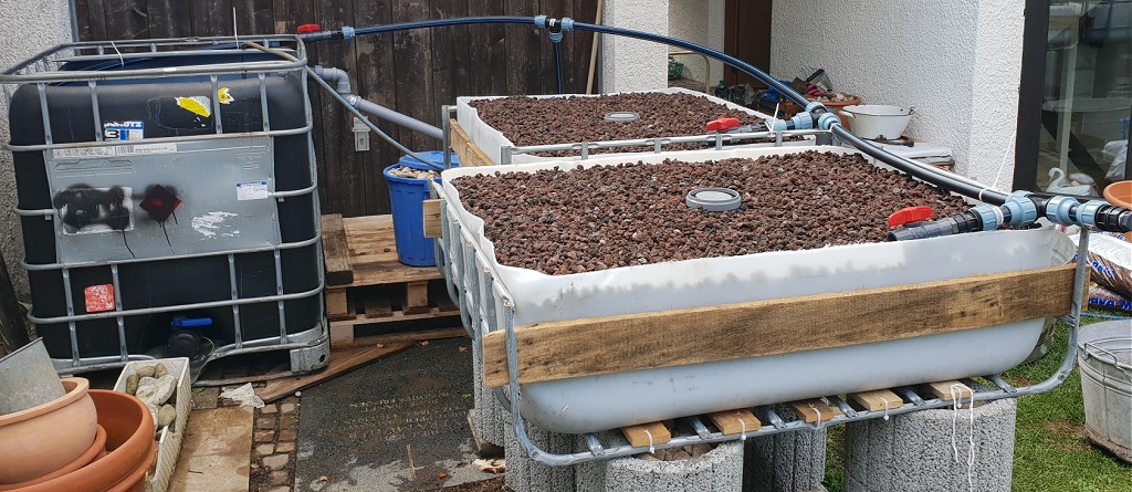 - Zwei 350L Ebbe&Flut Beete mit Lavamulch 8-16mm als Substrat.